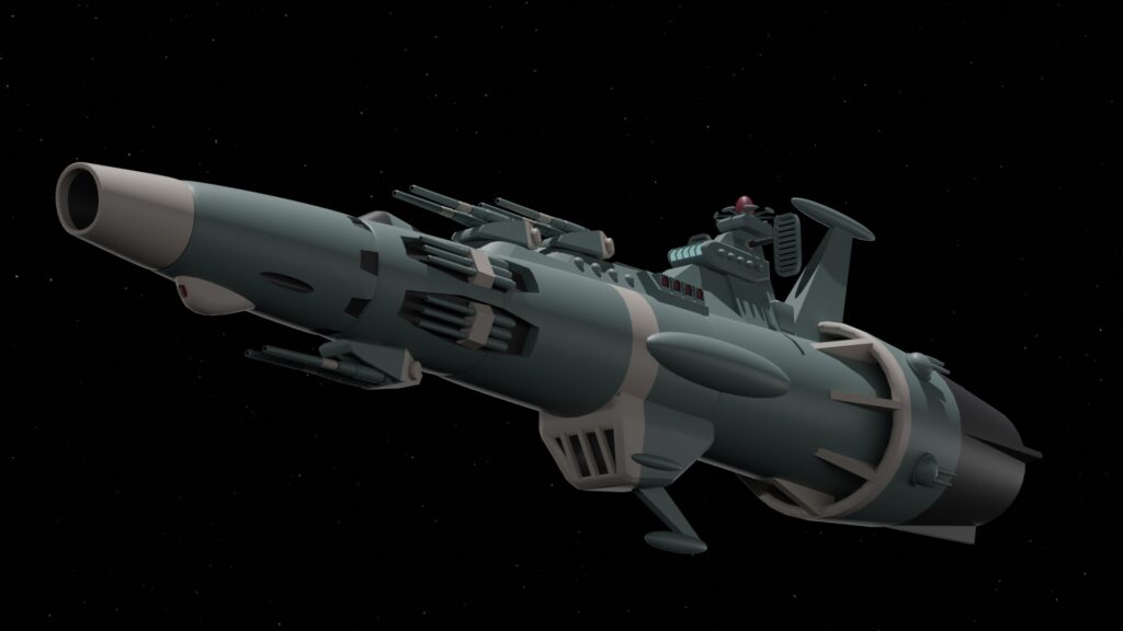 In my depiction I reuse the EDF Destroyer base hull, and make the necessary modifications to bring it in-line with the EDF Frigate concept art, while keeping the length the exact same as the Destroyer counterpart. The EDF Frigate was renewed in newer iterations of Space Battleship Yamato as the “Escort Frigate.”